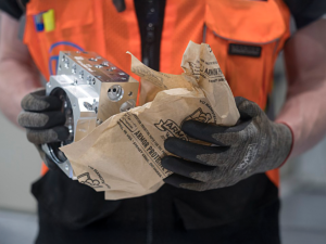 Nuestro papel kraft con pH neutro y tecnología VCI ofrece una barrera de defensa superior contra la corrosión. La clave de su eficacia es que está impregnado por ambas caras, lo que duplica la protección y garantiza que sus piezas metálicas se mantengan intactas durante años, ya sea en proceso, almacenamiento o transporte